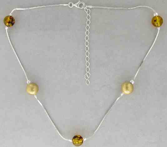 CTST0643BIAMB Beads And Amb Stones On Snake Ch. Necklace - gr. 12,7 in cm 45 - Width Ø mm 0